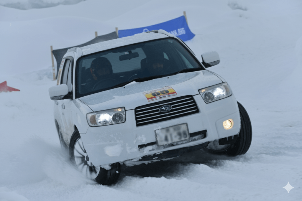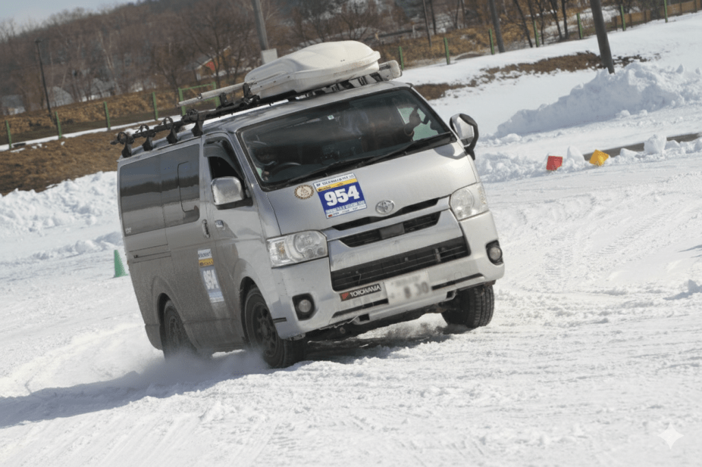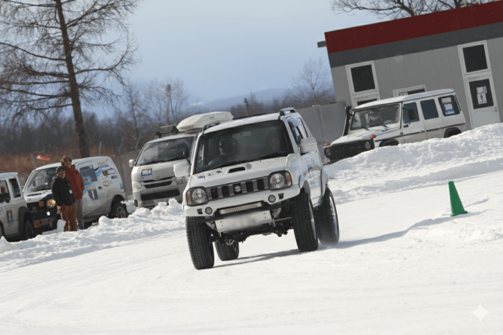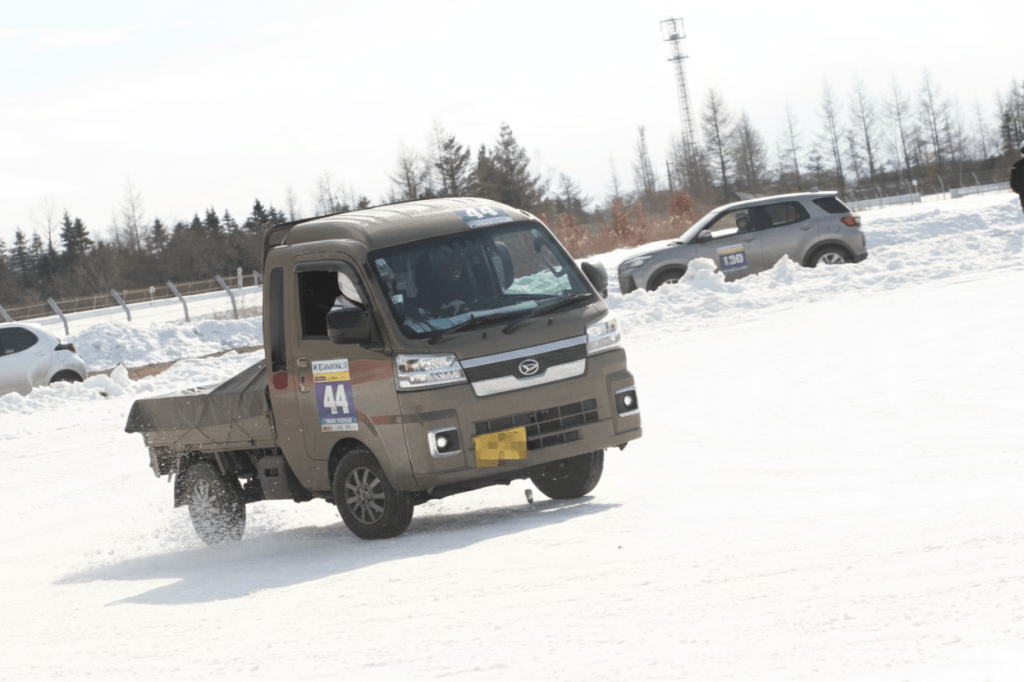 特別な車両、競技用の改造はいりません。普通免許で運転できて、全輪にスタッドレスタイヤが装着されていれば基本的にOKです。軽トラでもワンボックスでも、オープンカーでも、スポーツカーでもSUVでも、みなさんいろんなクルマでチャレンジしています。