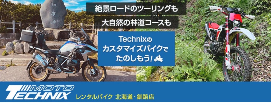 テクニクスノース(釧路)の協力により、NIR2025スペシャルプランが提供されます。テクニクスのサスペンションチューニングが施された最高のバイクでNIRを満喫しましょう。